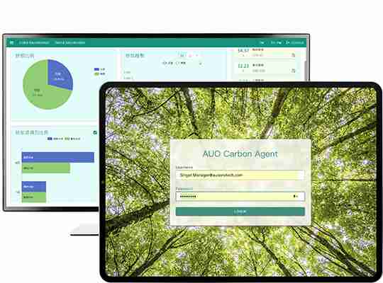 依循 ISO 国际标准建置出符合国际标准的全方位碳管理平台 (AUO Carbon Agent),,其中温室气体盘查模组可协助客户将组织、、、、产品与供应链的碳排放源数据,,,,透过系统内建的系数资料库自动计算出碳排量,,,,提升整体盘查作业的效率,,并以此拟定长期减碳策略,,,,达到低碳转型、、净零碳排的目标。。