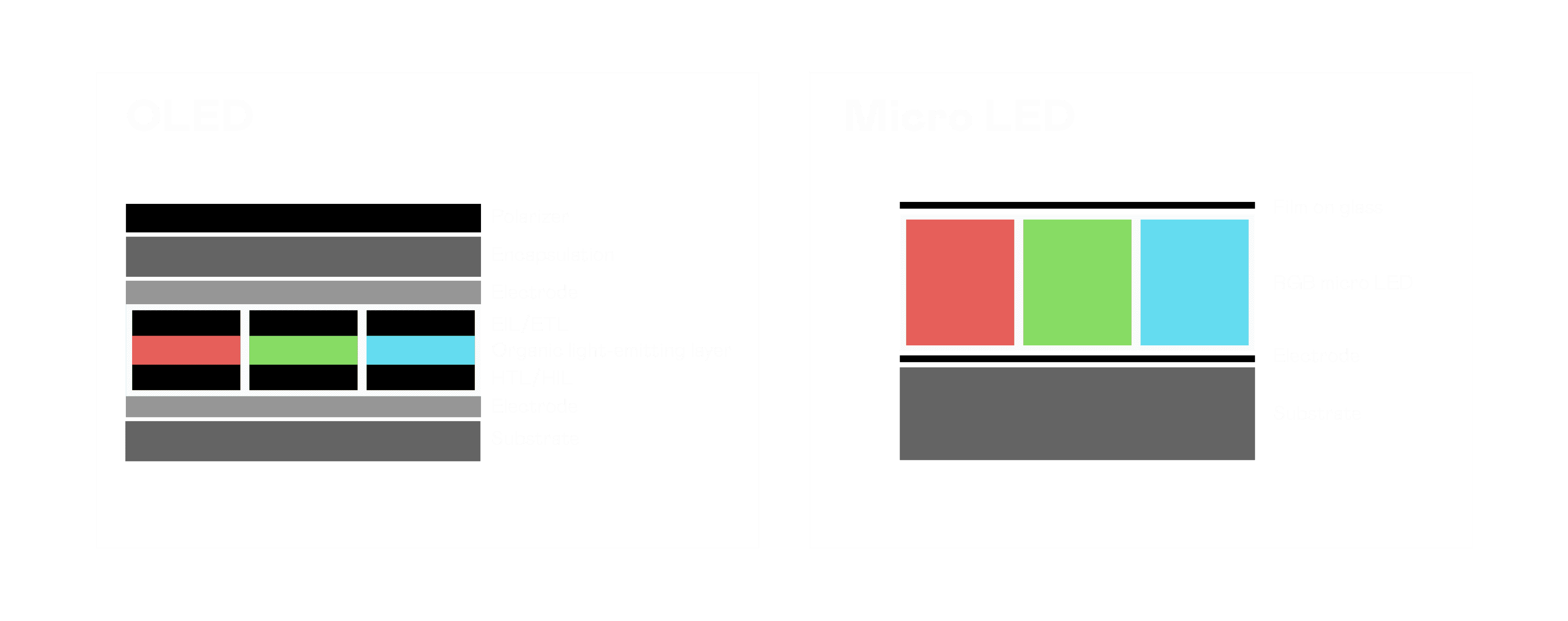 以 LED 做为显示画素,,可让 LED 的发光效率发挥到极致,,,,从而让显示器具备优异的亮度表现,,不论是在户外或室内,,均具备出众的显示效果。。同时,,,,与使用有机材料的 OLED 相比,,,LED 具备更稳定、、、寿命更长的特性,,不仅不会有画面烙印问题,,,而且更不容易出现故障、、、坏点。。。